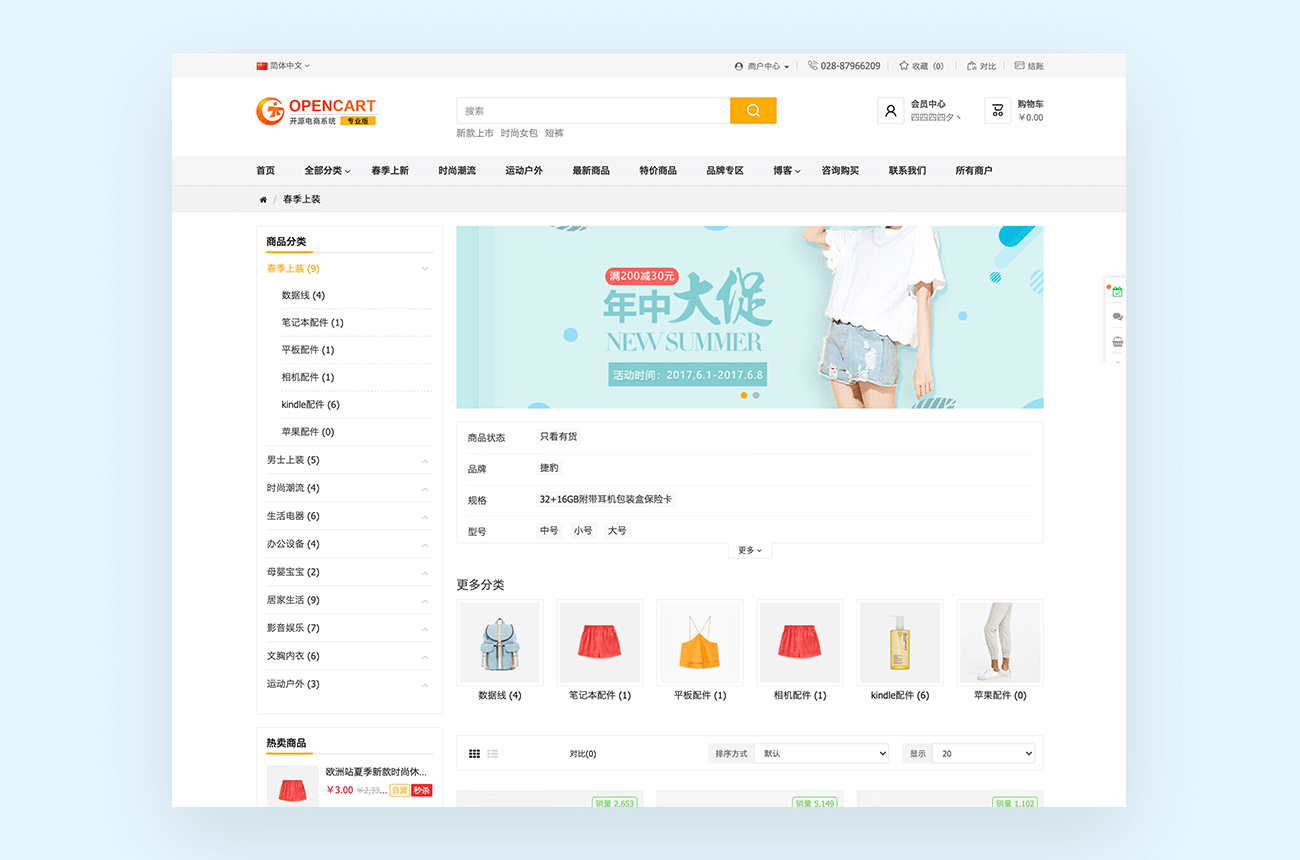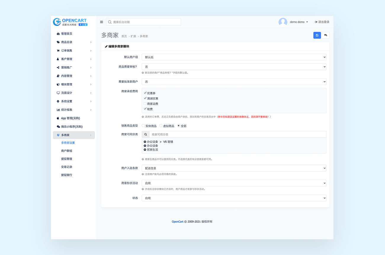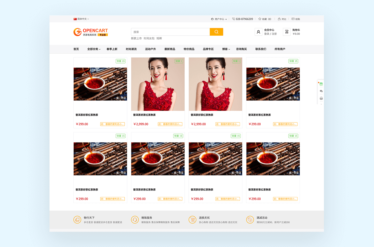 | 后端体验 | http://seller.opencart.cn/admin/ |