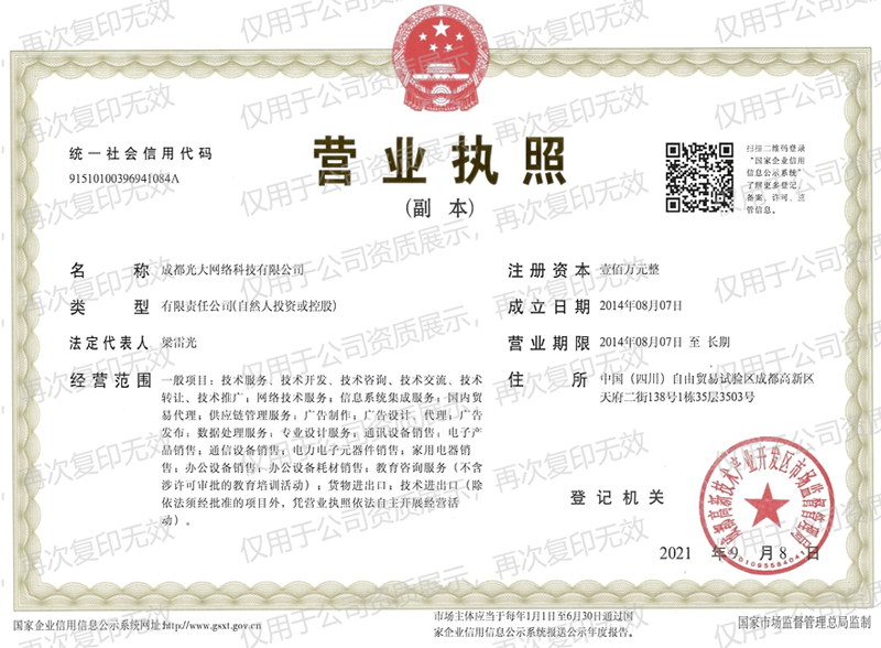 成都光大网络科技有限公司注册成立